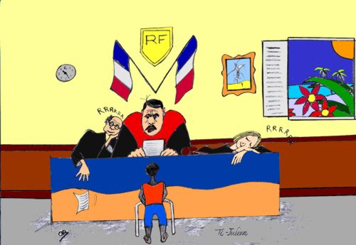 — Tchin bon, Monsieu le juge, moin ka continué! Moin fenn bois gomm là mais fin, fin, fin, fin.