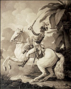 ![]() Denis A. Volozan, Portrait équestre de Toussaint Louverture, vers 1803. |