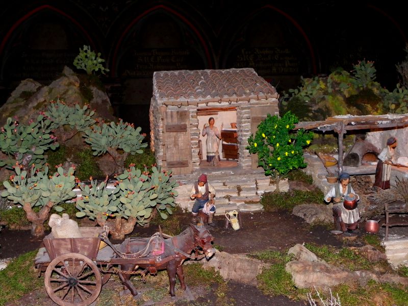 Cette grande crèche sicilienne animée, de plus de 25 mètres carrés, a été conçue par Salvatore MILAZZO, maître artisan renommé de la ville de Caltagirone (Italie), sous la direction artistique de Michele SALVETTERI, architecte. Elle a pris place au pied du mur Nord de la clôture du chœur, sous les scènes de l’enfance du Christ sculptées au XIVe siècle. - Pour plus d'informations cliquer ici