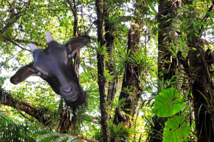 | «Pas mal ce jeune bouc» dit la tête à corps sans cornes. «Il fera un bon ancien hahahaha» et il disparut dans le bosquet. | |