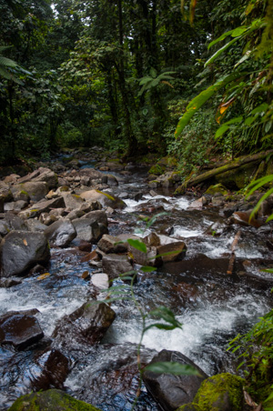 | Le soleil commençait vraiment à descendre vers l’horizon. Igor se précipita. Il devait retraverser la rivière. Dans l’empressement il n’avait même pas pensé à ne pas se mouiller les pattes. Maintenant, il cherchait le bon endroit pour traverser au sec et les bonnes roches. Il y parvint tant bien que mal.