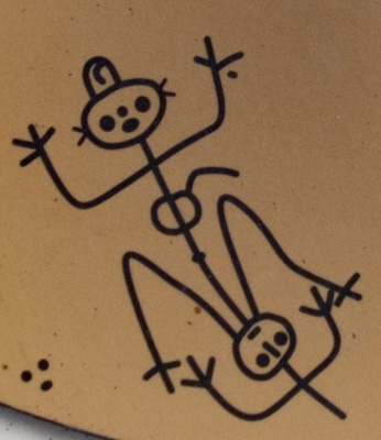 Roches gravées de l'Anse des Galets (Guadeloupe), probable scène d'accouchement. |